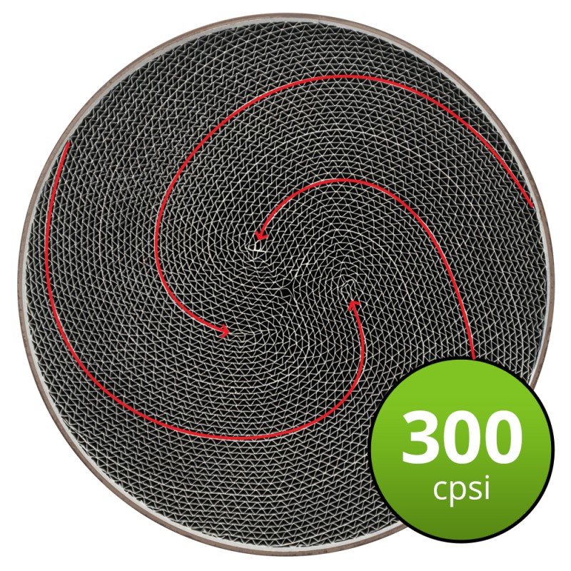 Catalizzatore sportivo in acciaio inox S409 con inserto metallico tipo S a 3 anime per aumentare le prestazioni e la durata. Compatibile con motori a benzina, diesel e GPL. Montato in parallelo per supportare cilindrate fino a 10 litri.