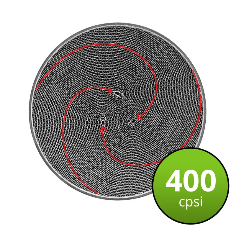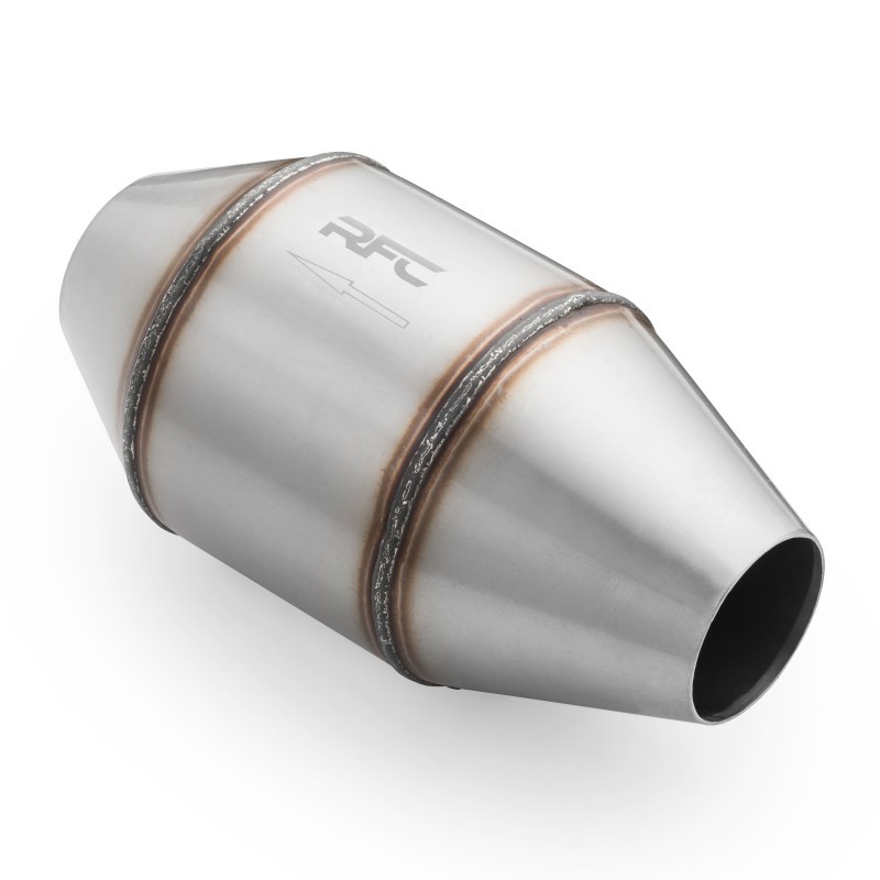 Convertitore catalitico universale in acciaio inox S409 con inserto metallico di tipo S a 3 anime per aumentare le prestazioni e la durata. Compatibile con motori a diesel. Montato in parallelo, supporta cilindrate fino a 10 litri. Il cono su un lato è stato accorciato, consentendo il montaggio del catalizzatore su auto con spazio limitato.
