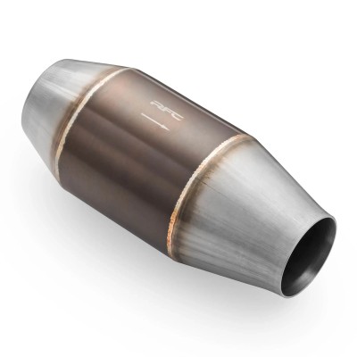 Sportowy katalizator ze stali nierdzewnej S409 z metalowym wkładem typu S z 3 rdzeniami dla zwiększenia wydajności i trwałości. Kompatybilny z silnikami benzynowymi, diesel oraz instalacjami LPG. Zamontowane równolegle obsługują pojemność silnika do 5 litrów.