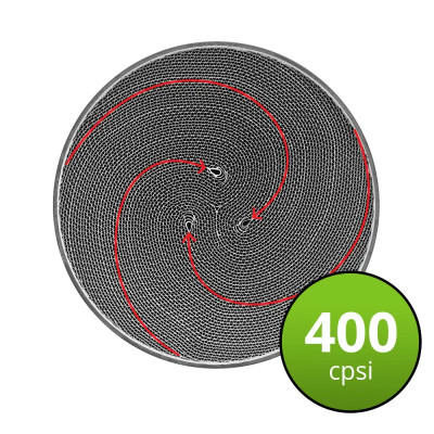 Uniwersalny katalizator ze stali nierdzewnej S409 z metalowym wkładem typu S z 3 rdzeniami dla zwiększenia wydajności i trwałości. Kompatybilny z silnikami diesel. Zamontowane równolegle obsługują pojemność silnika do 10 litrów. Stożek z jednej strony został skrócony, co pozwala na montaż katalizatora w autach z ograniczonym miejscem.